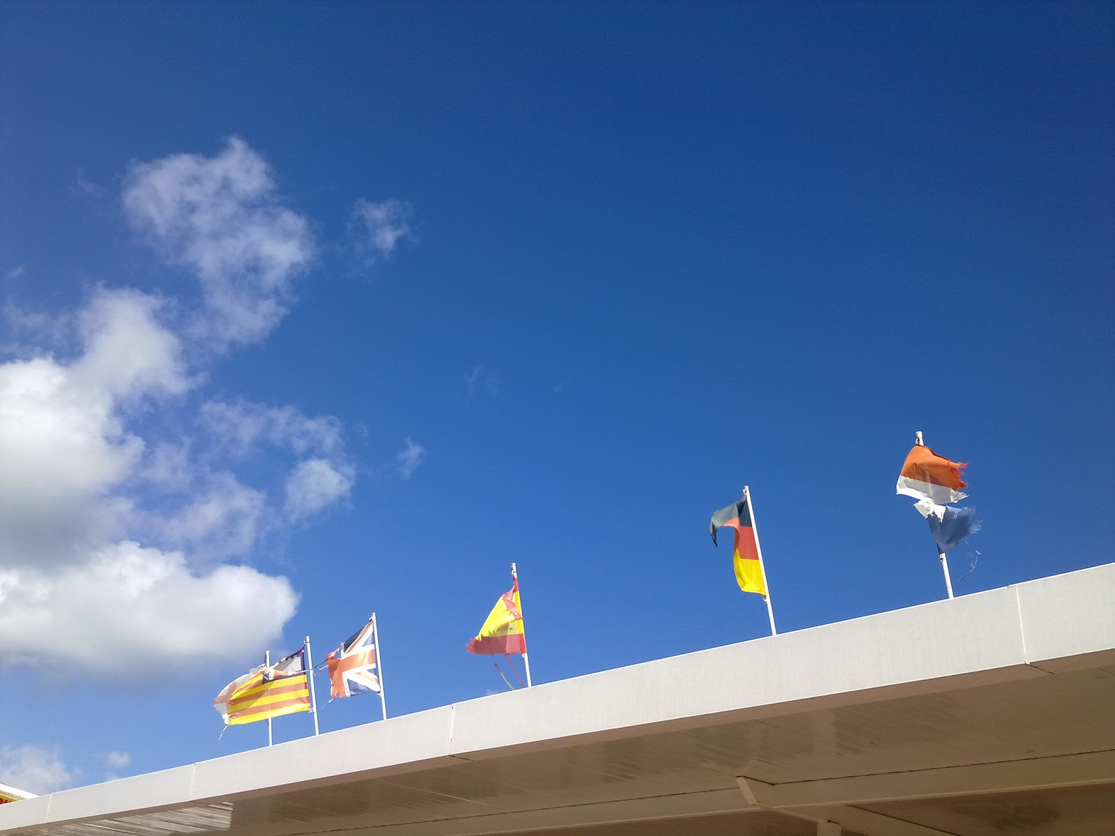 Bien, pues hoy me he levantado con el sol brillando en el cielo, lo cual es siempre muy buen augurio. Y esta de aquí arriba es la vista que hay desde el balcón, donde se distingue un cachito bonito de mar, y detrás de un pico del puerto, el mar abierto.
